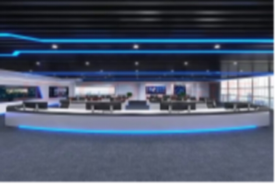 6.1.4 电气与装饰配置:操作桌面前沿配置 LED氛围灯带,亮度均匀柔和,具备开关控制;桌面走线孔布置于右上角位置,满足强弱电、网线规整布线;内部预留线缆管理空间,含理线架、走线槽,布线规范、检修方便。